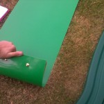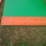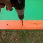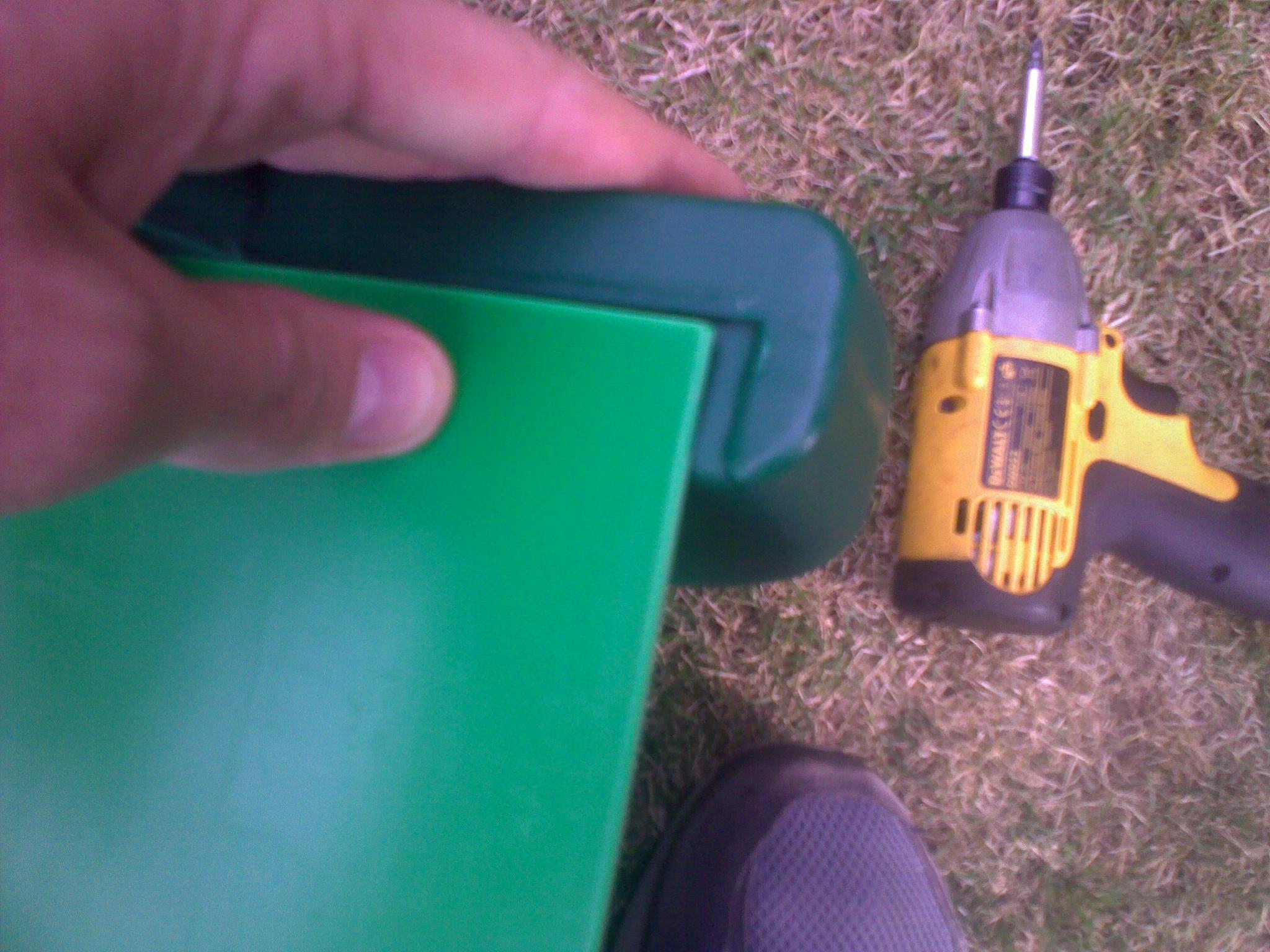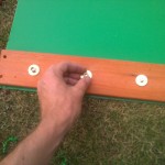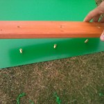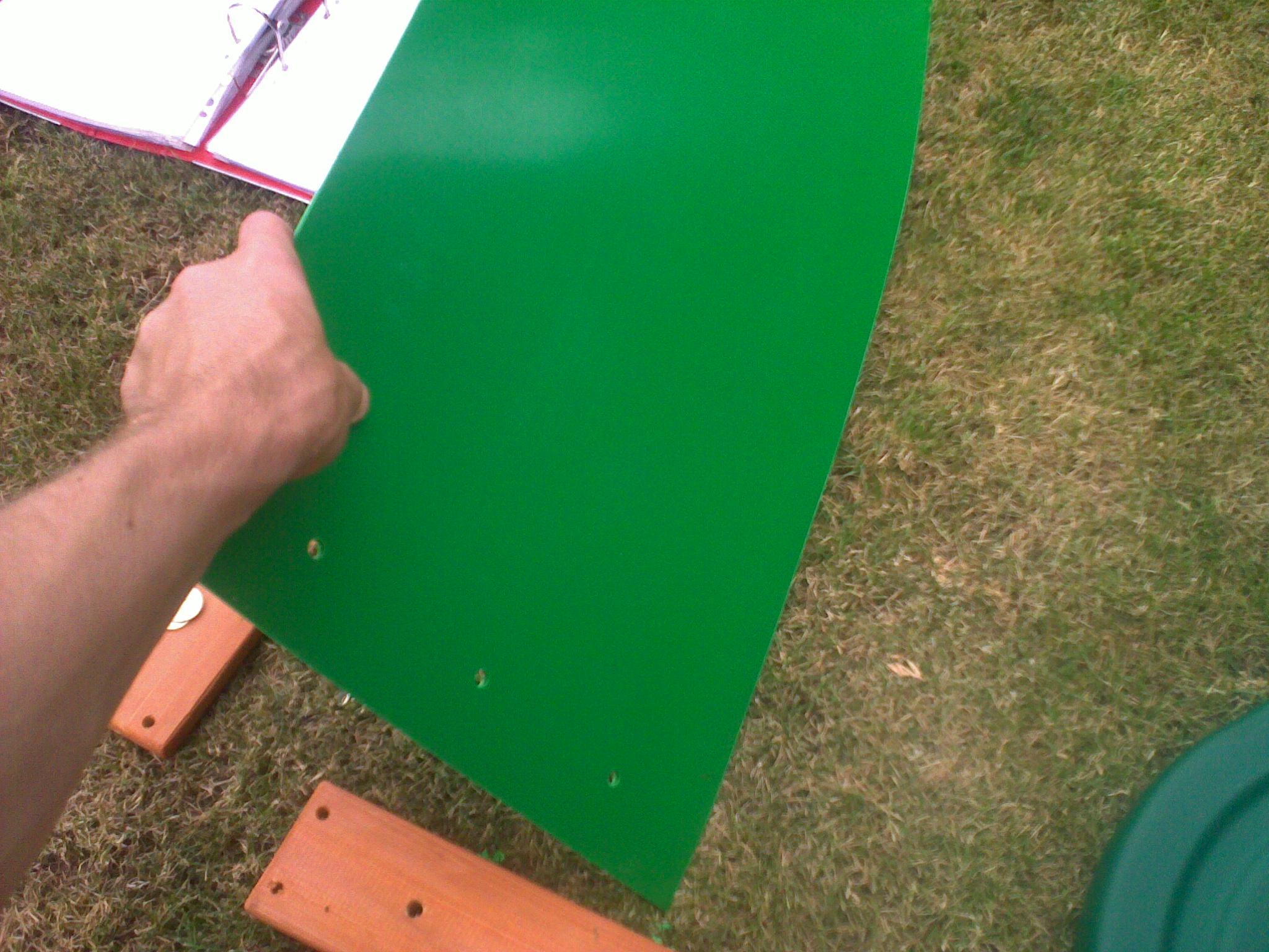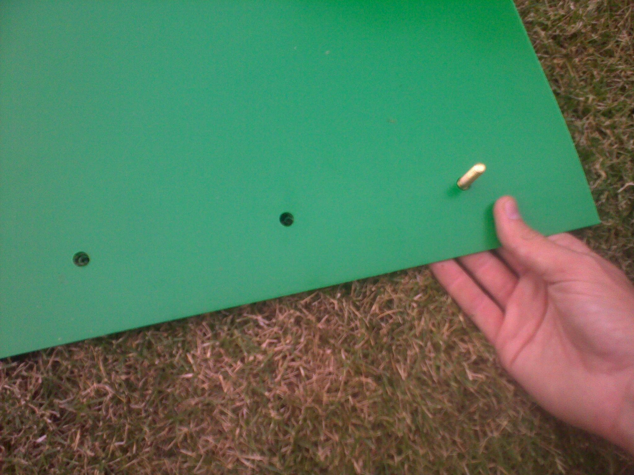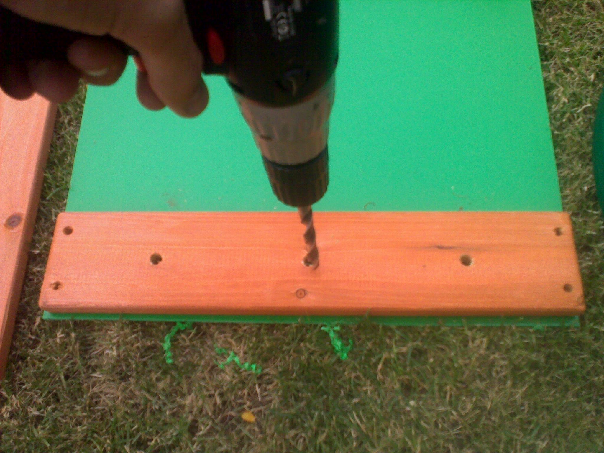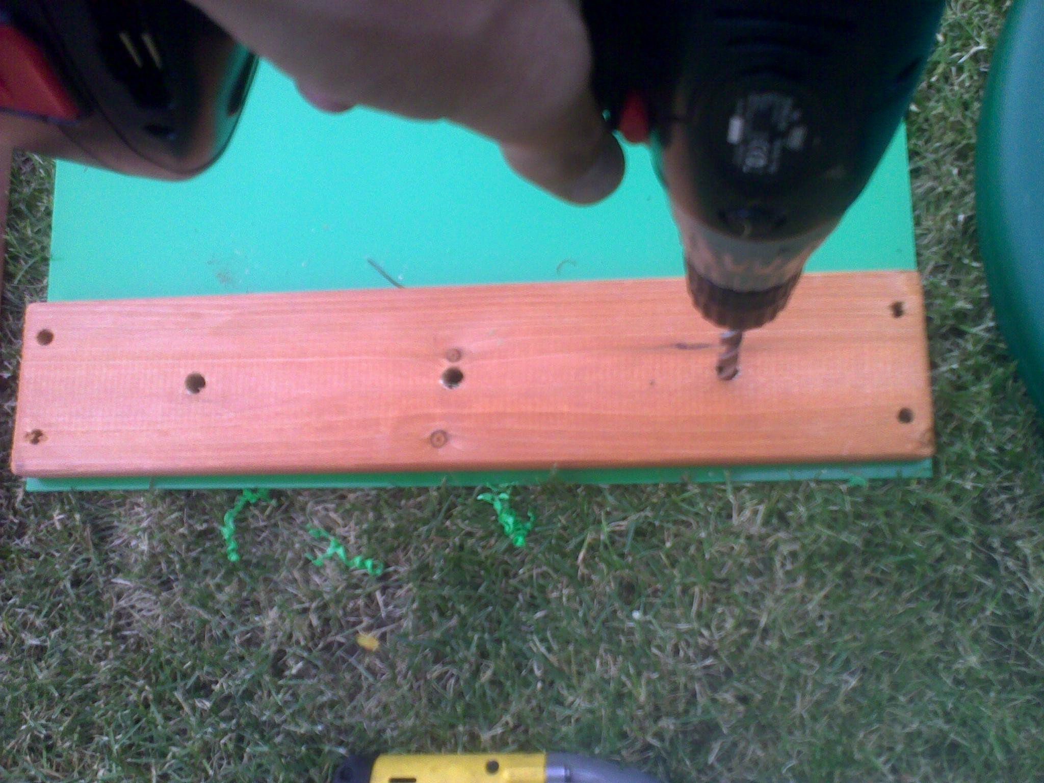 - Use the larger piece again as the template and drill into the slide bed. Tips: Place the larger piece of wood directly at the end of the plastic so both sides are even. Then lift the wood just 5mm from the end of the slide as per pictures