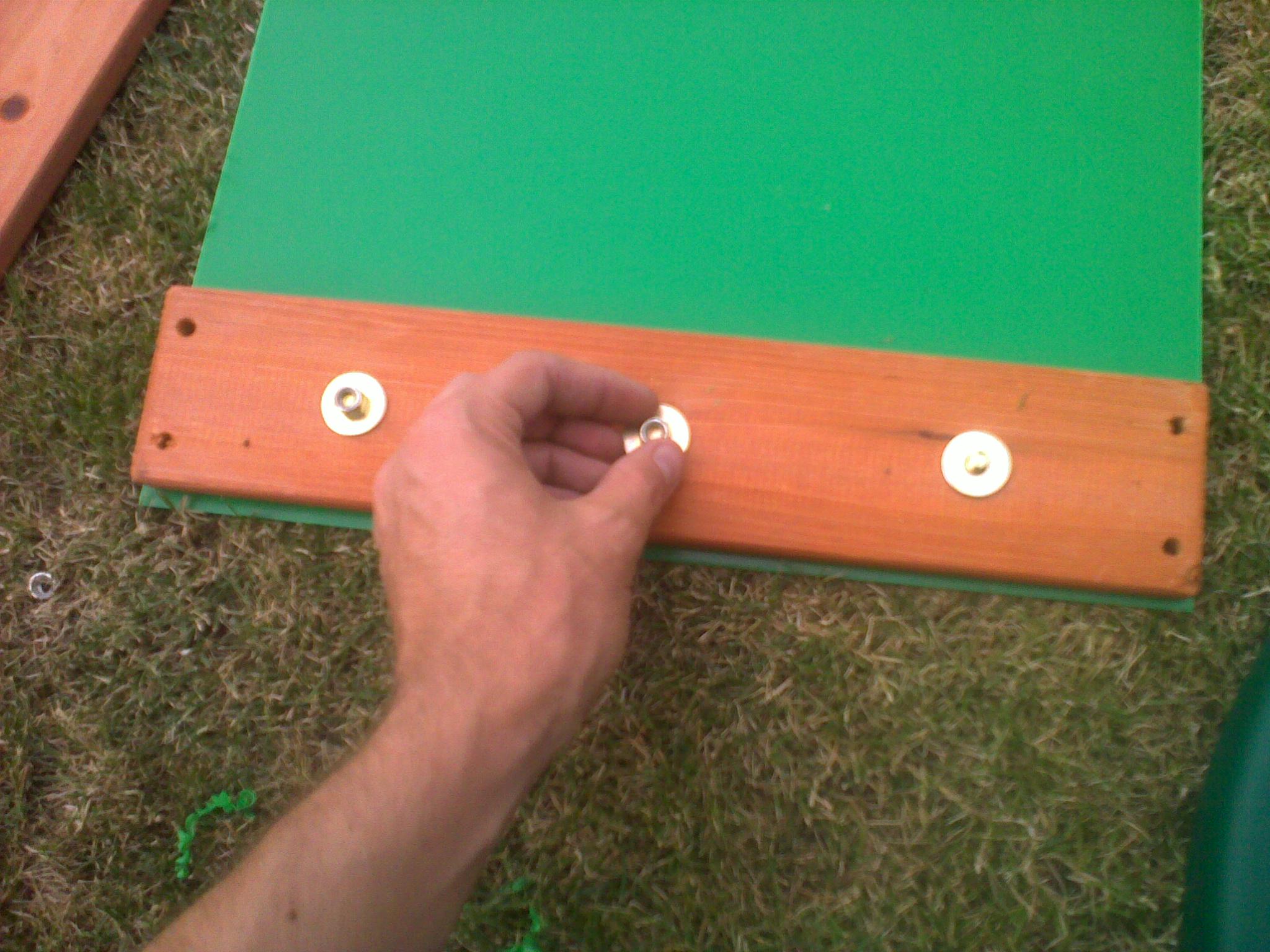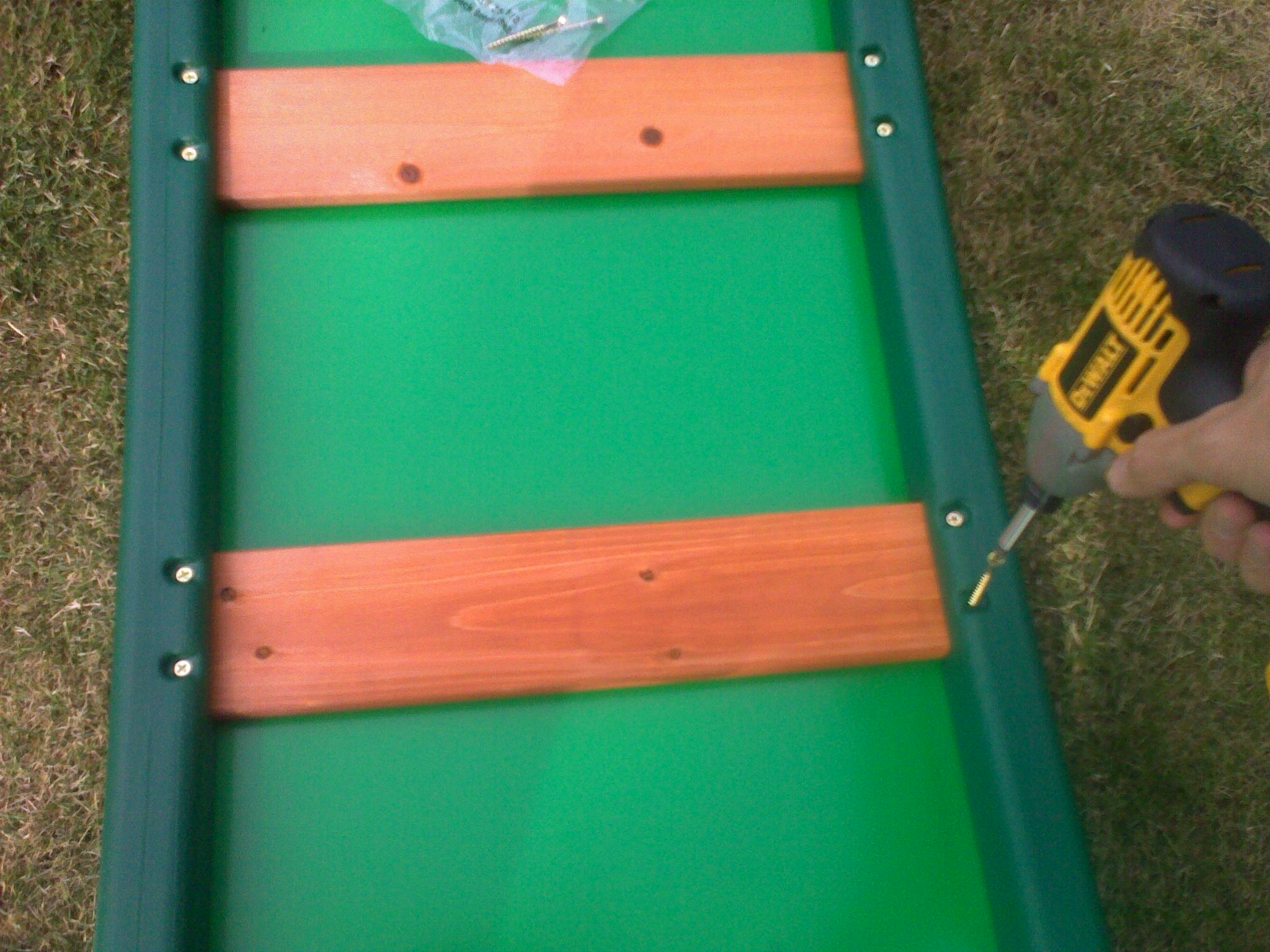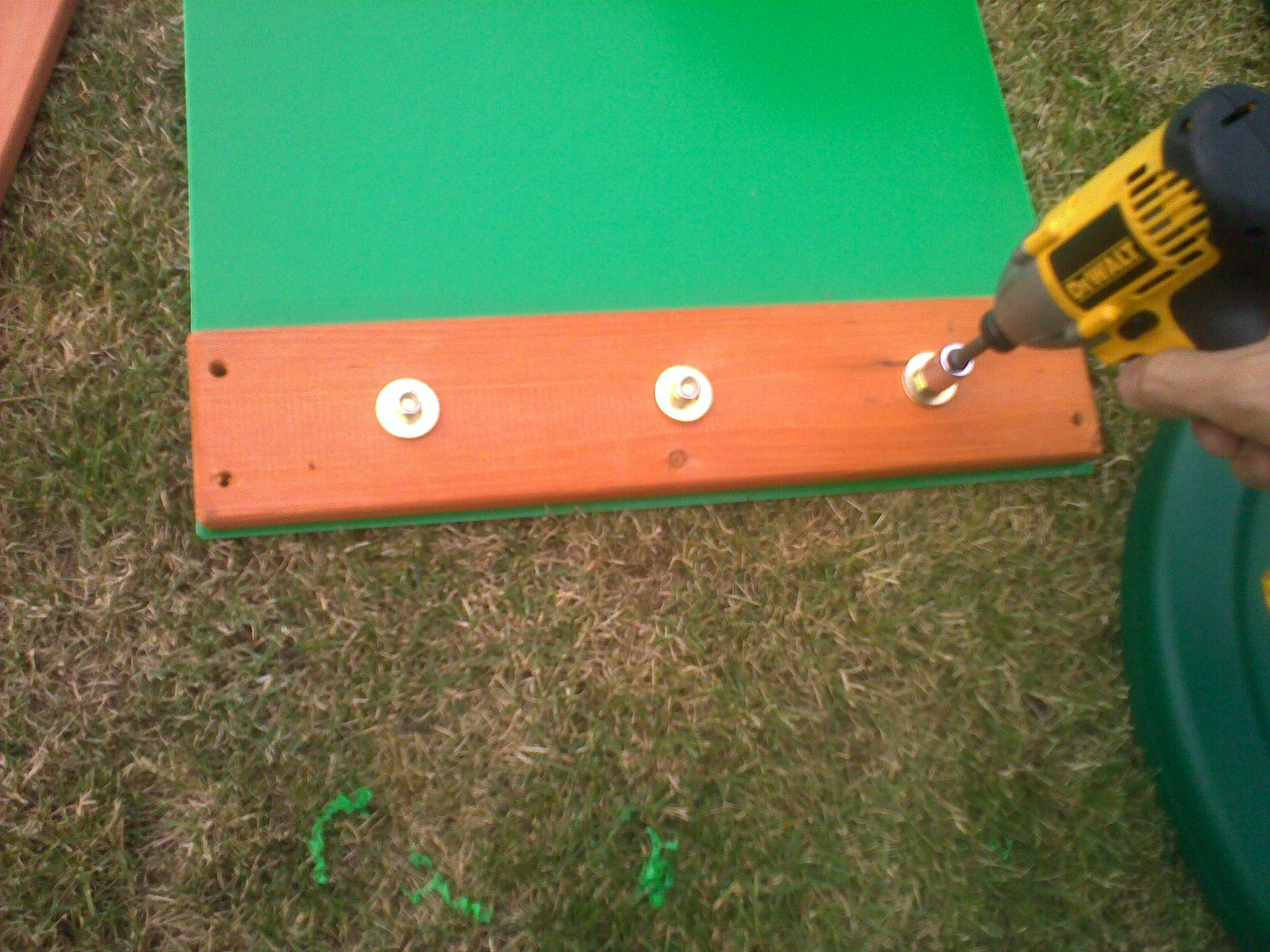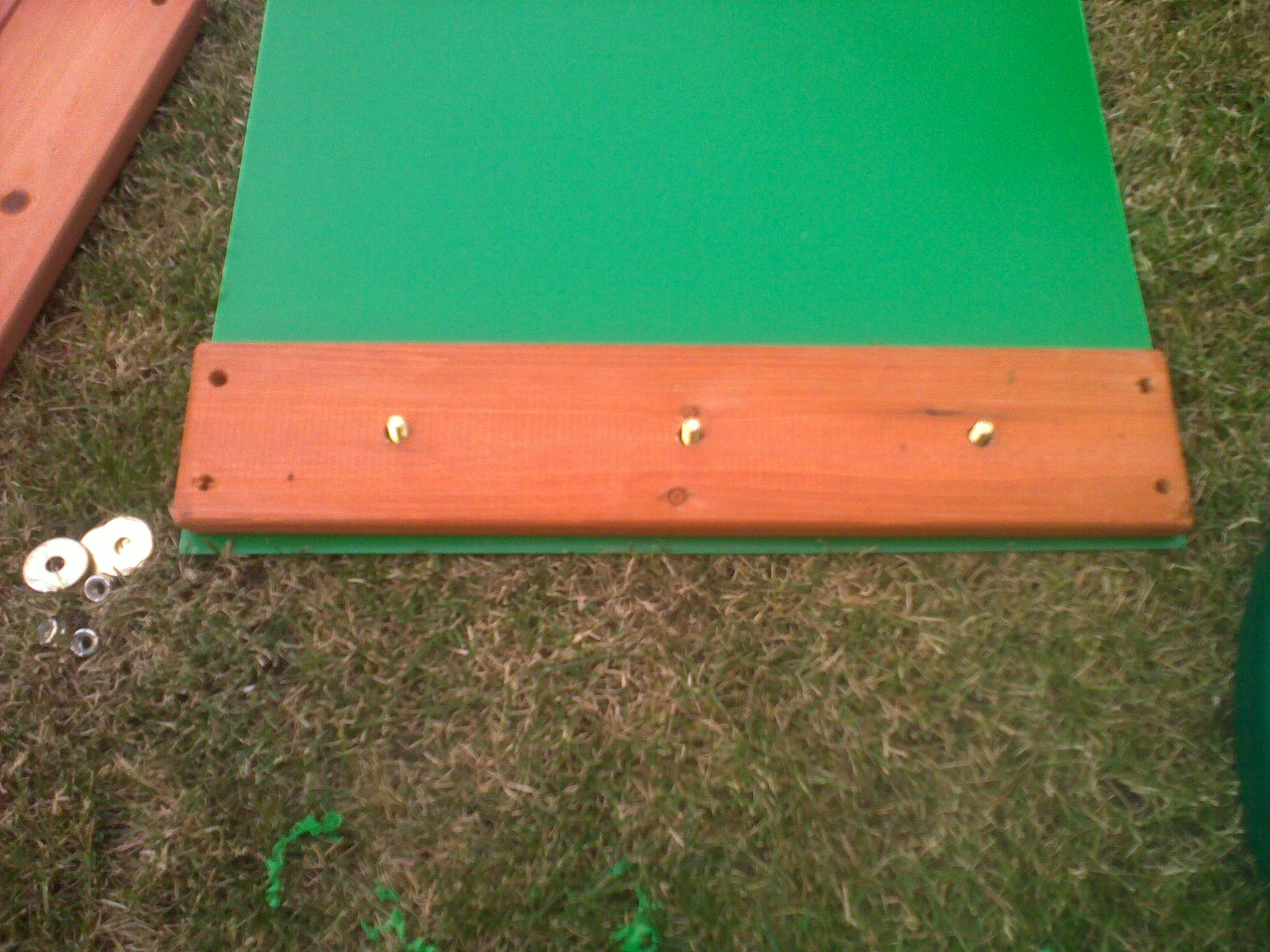 - Attach this wood with the carriage bolts or bolts they suggest in the instructions.
