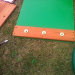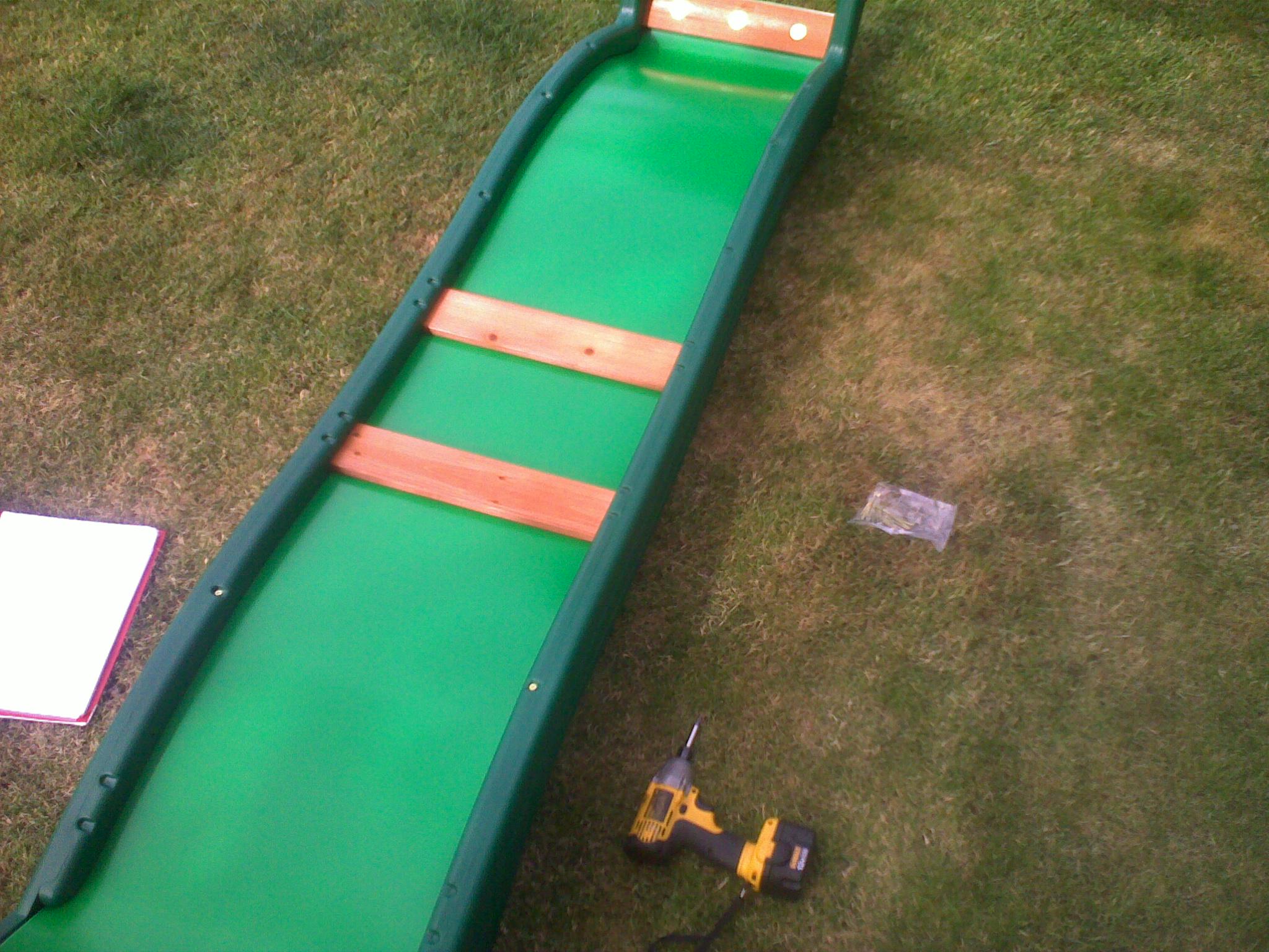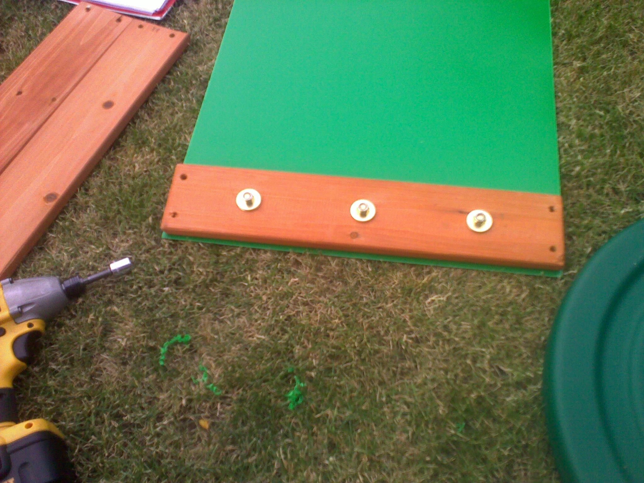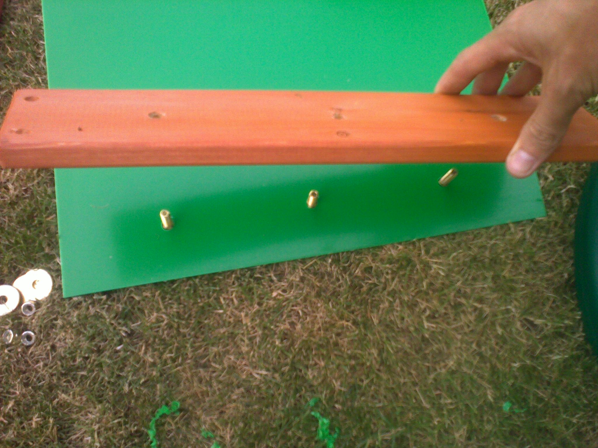 - Attach this wood with the carriage bolts or bolts they suggest in the instructions.