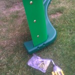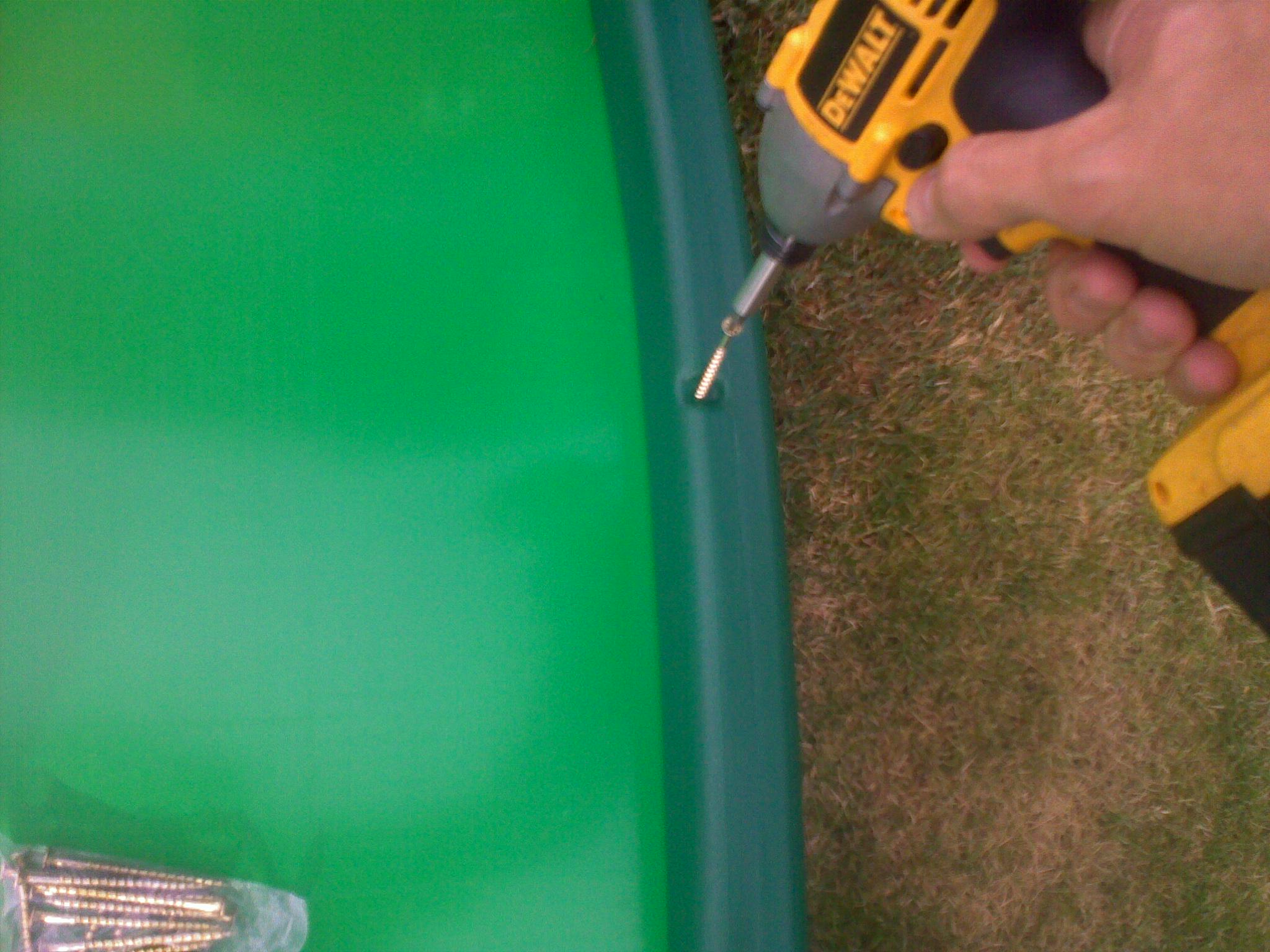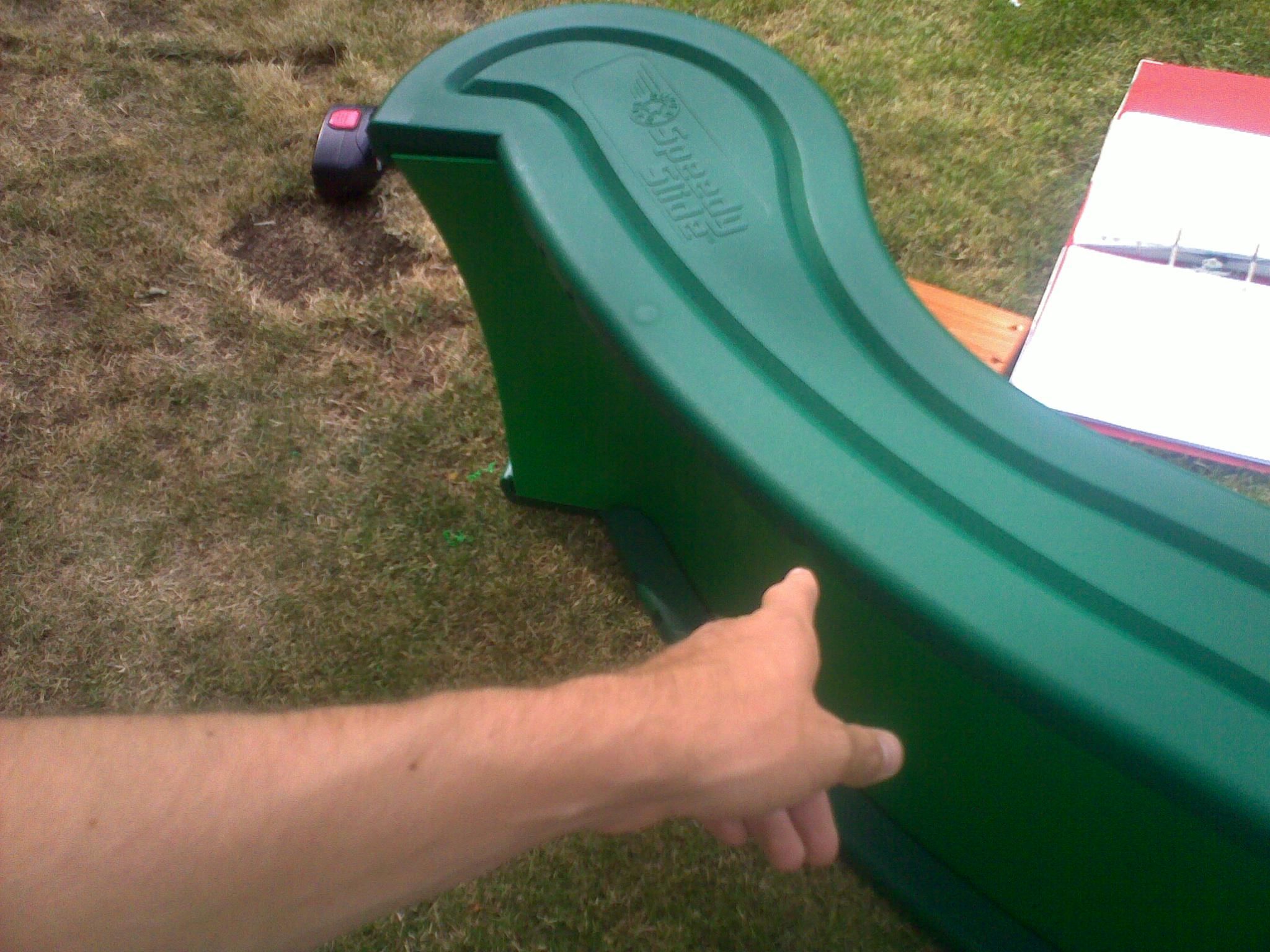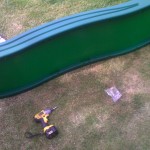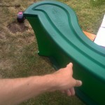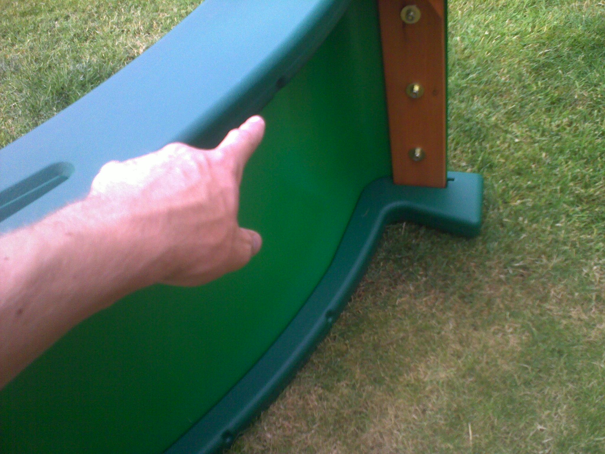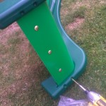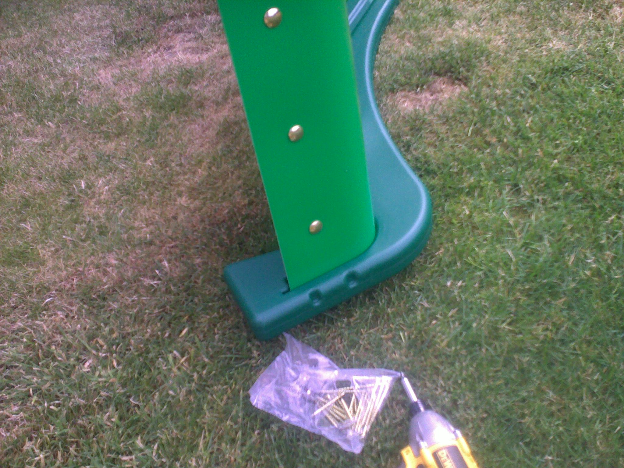 - Hold in place and drop the slide onto the top, push it together with your legs and screw together