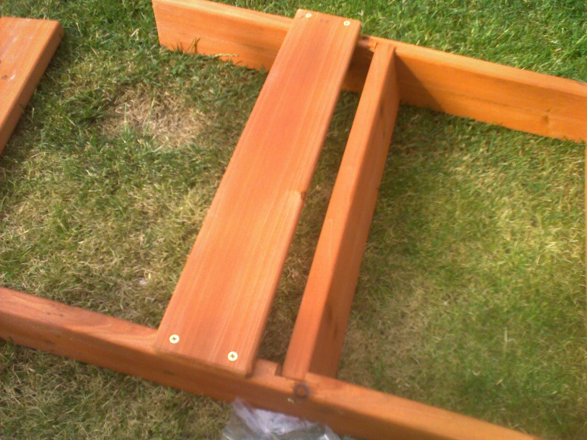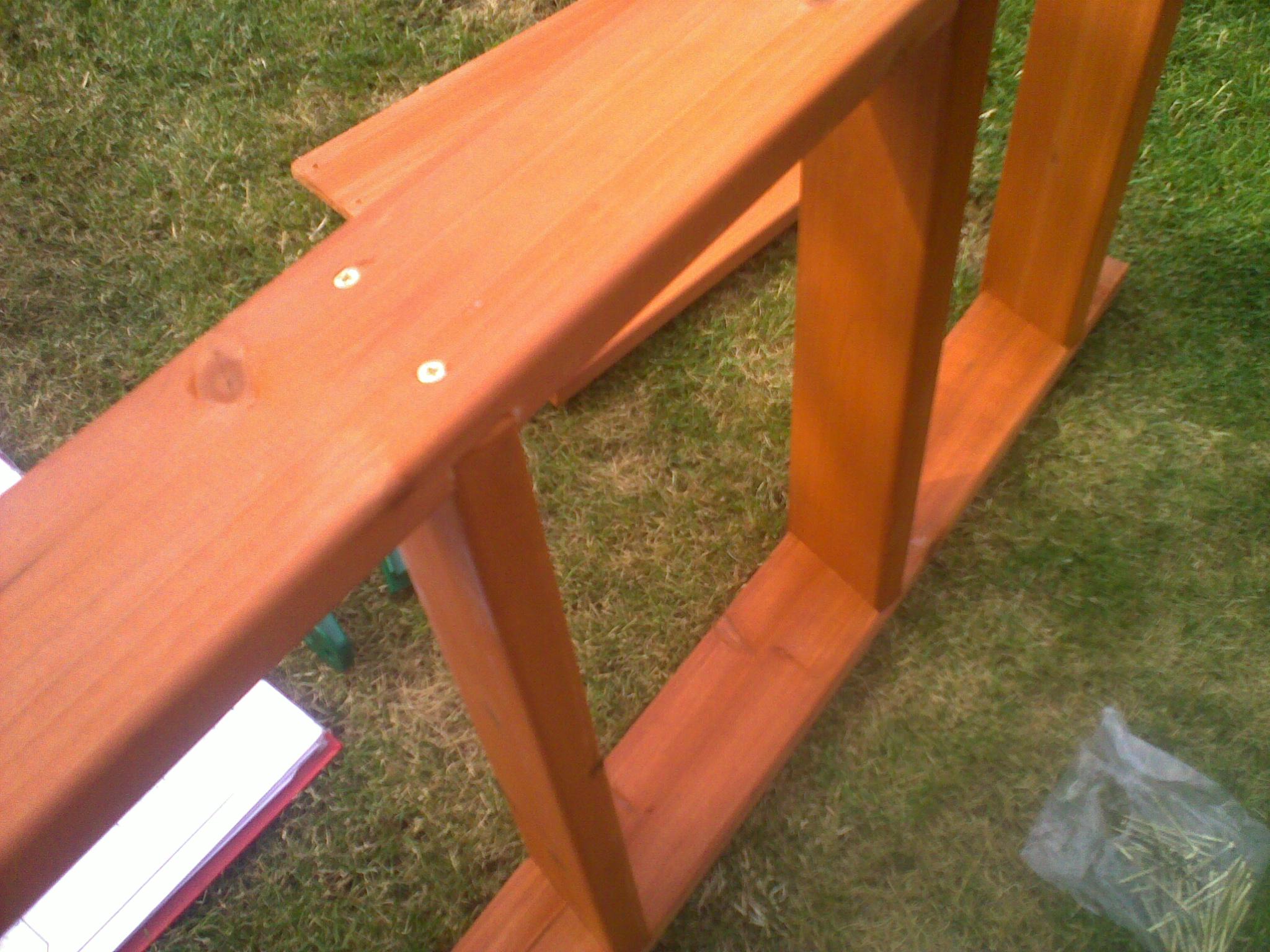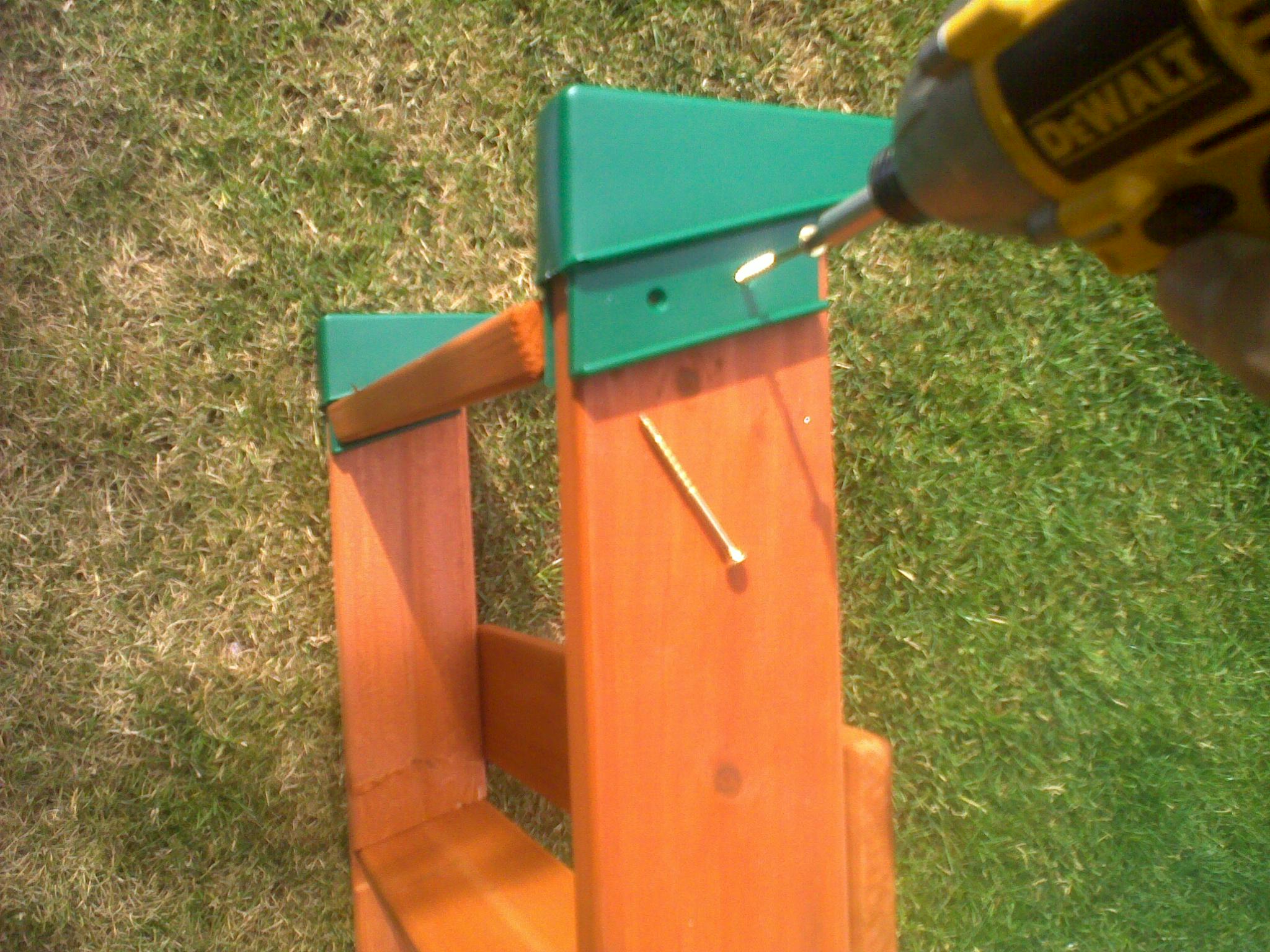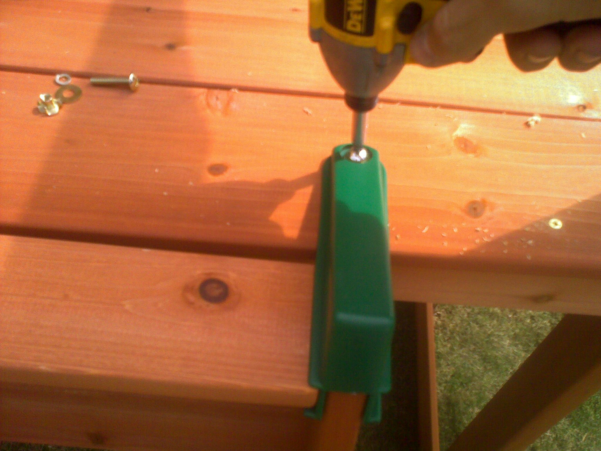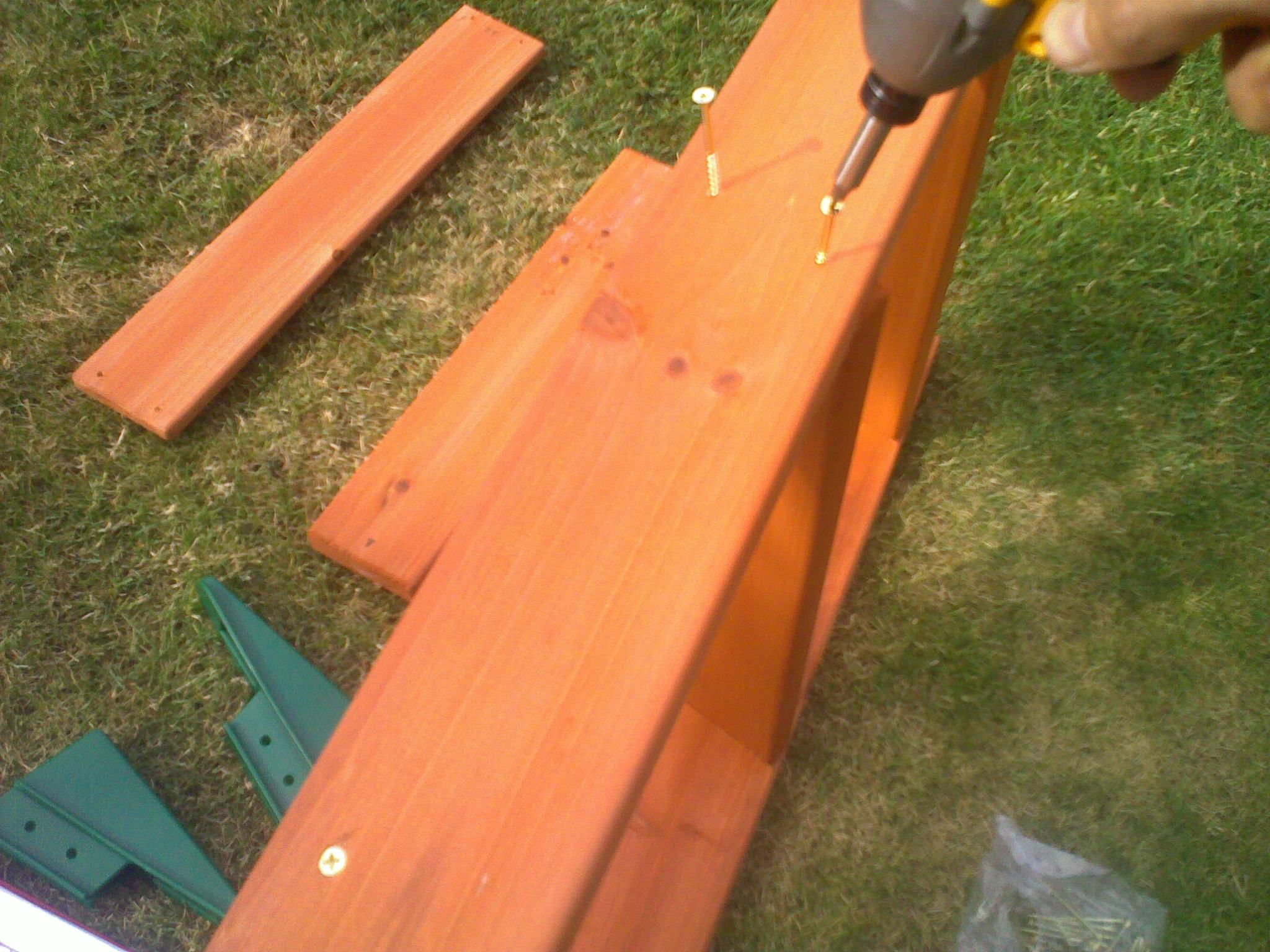 - Place the other leg, put the screws in and make sure the screws are straight.