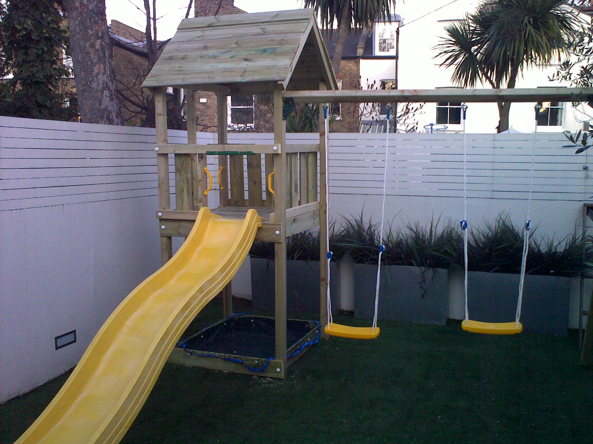 The Jungle Gym Club Climbing Frame is a highly compact tower with a sturdy wooden roof and is very stable set once built for the smaller garden or budget. With a base area of just 1.5sqm it is perfect for smaller gardens. But that doesn’t mean you will have to compromise on play value at all and with built on features like swing beams you can expand the moduler playset. The great features of the Jungle Gym Club include a 2.4m wave slide, climbing ladder and sandpit. You can even choose the colour of your slide. Please make your selection from blue, green, red or yellow from the drop down box below.