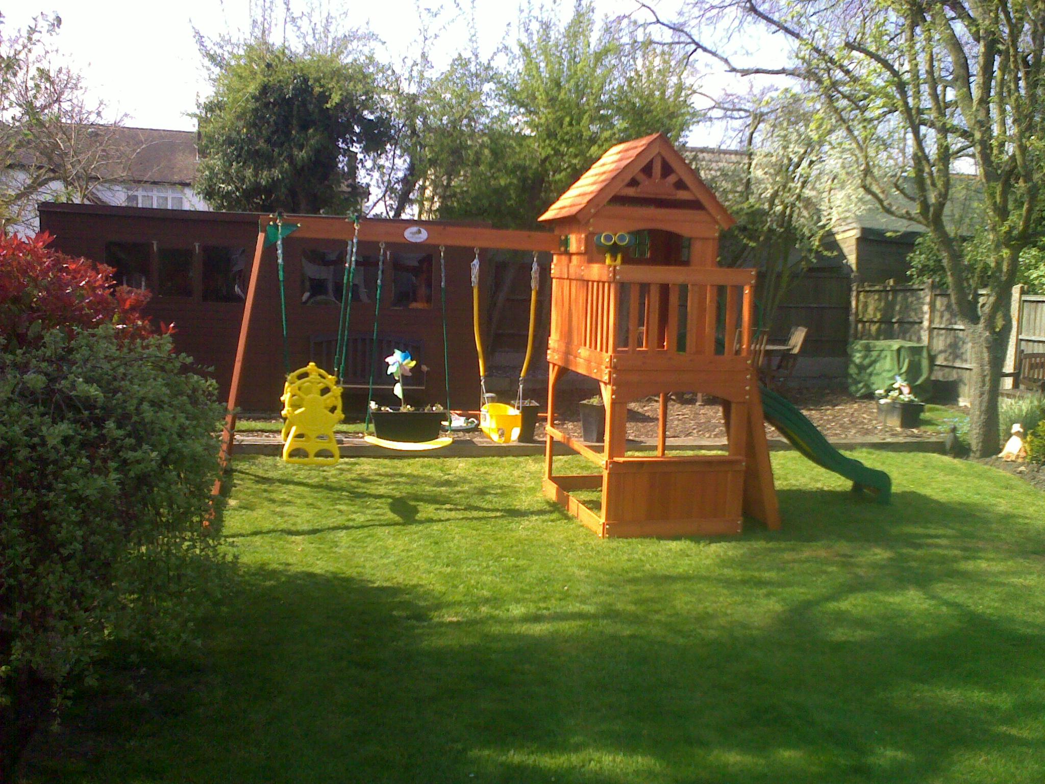The Selwood Atlantis is a multi feature playset built from Cedar wood. The main fort has bay windows and wooden roof. It has a balcony area which is idea for telescopes and other climbing frame accessories. The deck height itself is 1.2m. The swing is a 3 position swing, 2 belt swings and 2 person glider. It has a solid rock wall and can be in two different layouts. Either long with the slide from the side or L shaped with the slide from the side. This does mean it will have a couple of pre-drilled holes visible if it comes from the side however it could fit into your garden better.