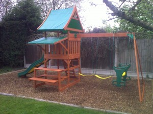 The Columbia Climbing Frame can be built directly on top of any flat, level surface including grass and comes with fixing stakes for extra stability or ask our installers when booking and we can bring metal stakes upgrade and even concrete the climbing frame for the extra stability.