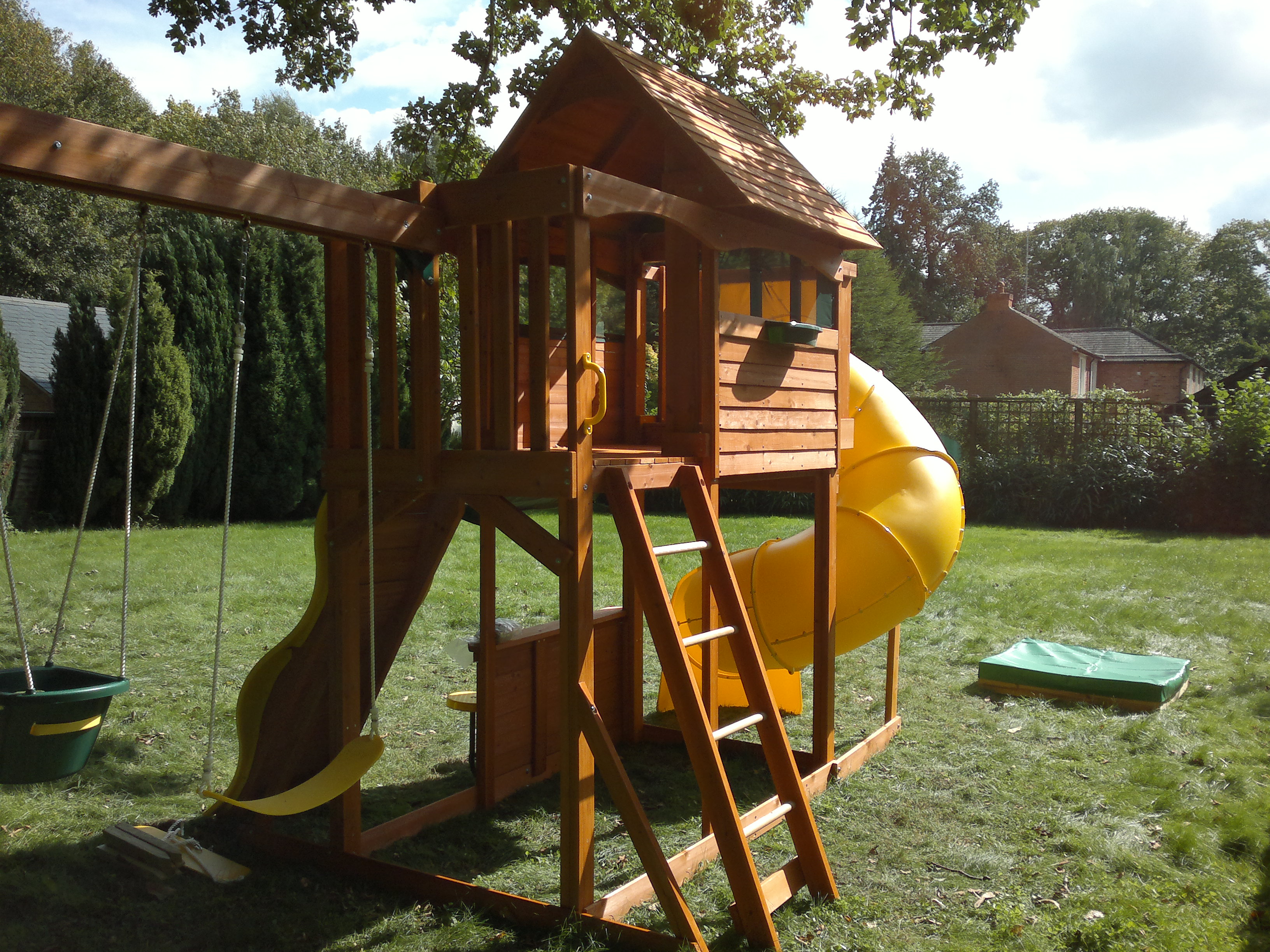 The Selwood Summerville playset is a very nice kit. Its one of the longer build in the ready boxed section that Selwood import and sell through retailers. This set is the standard Summerville, they do sell a deluxe package which comes with a cabin underneath to make it look very much like the 2011 Costco Panorama. The deluxe package makes the playset a very sturdy climbing frame with some top features and specs.