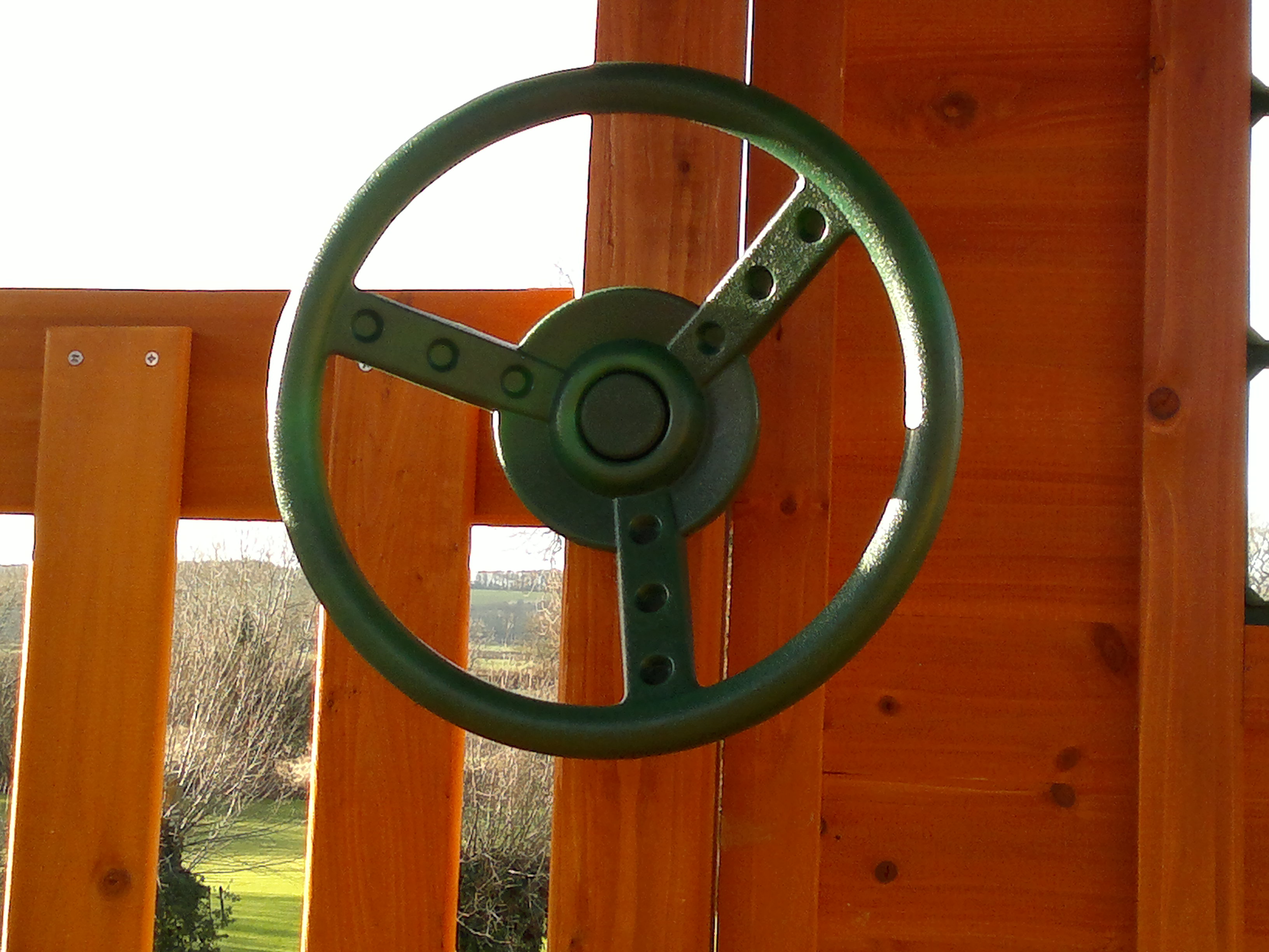 Many climbing frame companies offer accessories, many will offer the usual of binoculars and telescopes but these even differ in quality. We can find you the best quality accessories, since we deal with all of the top manufactures with our builds we might even be able offer you cheaper accessories or point you to the best shops. Steering wheels come in forms of the normal wheel then captains wheel along with many other designs and some playsets will have specific dimensions or only be able to have certain accessories due to the size of the wood.