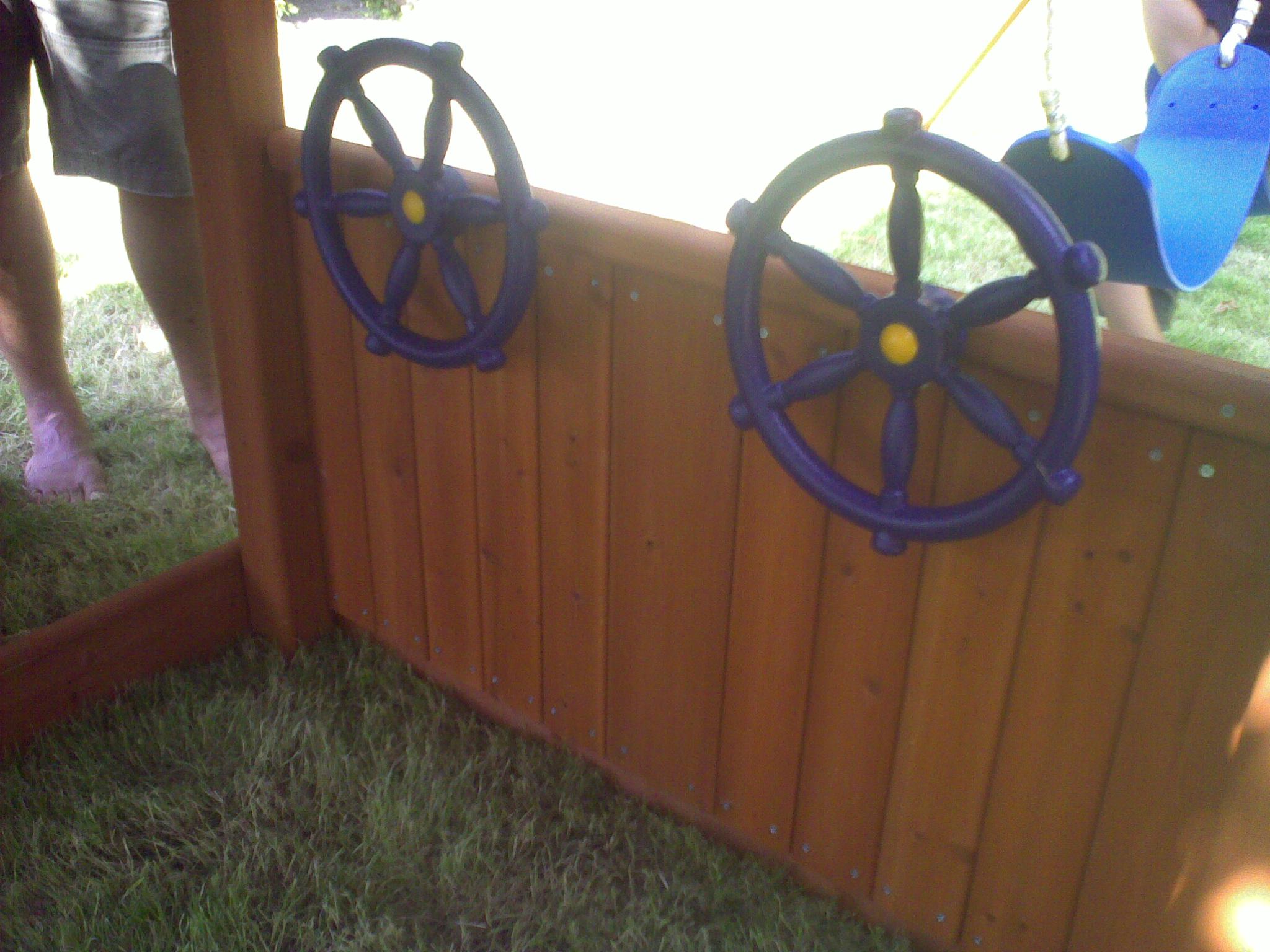basis for many fun games for imaginative little minds and will keep little ones imaginations running wild! A plastic steering wheel or two can be attached to any part of your climbing frame, from the upper play deck rails or panels to underneath the main playhouse.