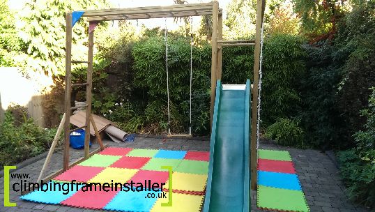 Foam matting is not a good choice of safety flooring to use with children’s climbing frames and play equipment. Take a look at other safety surfacing options and seek advice on what flooring is best for you, your playset and your garden.