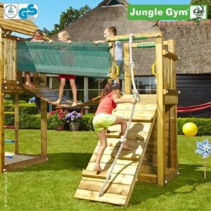 The Cottage Bridge is a jam packed climbing frame from Jungle Gym. This fun-filled playset will certainly keep boredom at bay and can provide hours